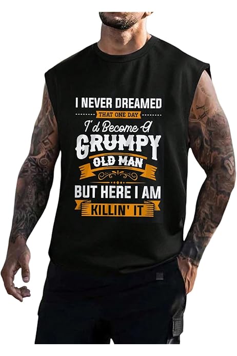 Amazon Com Mens Workout Tank Top Loose Fit Round Neck Muscle Cut Off T Shirt Street Trend Hip Hop Letter Print Sleveless Shirts 01 Black Small Clothing Shoes Jewelry