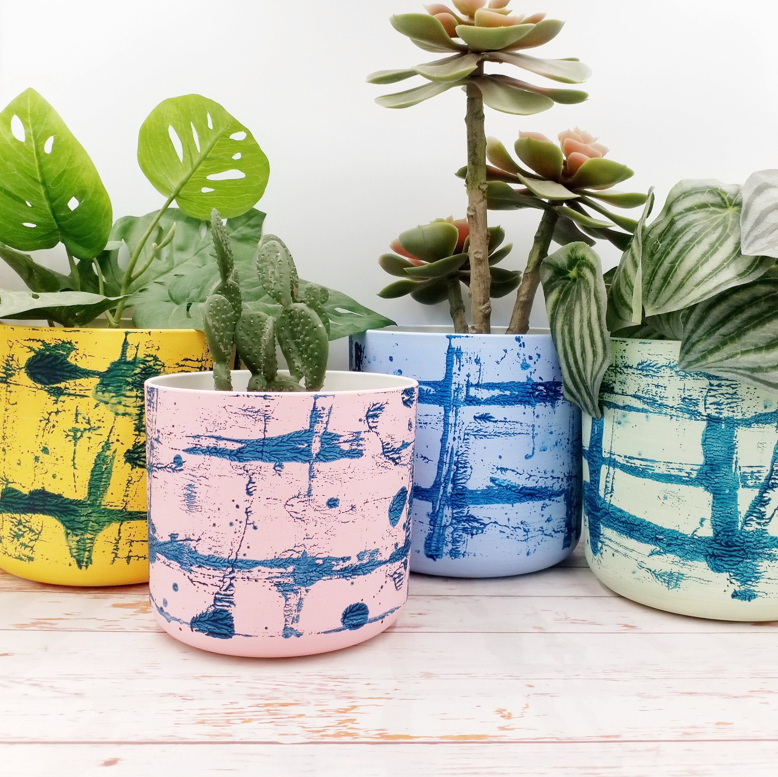 Eco Friendly Planter Plant Pot Indoor 16 Cm Diameter Made With Recycled Plastic Hand Painted